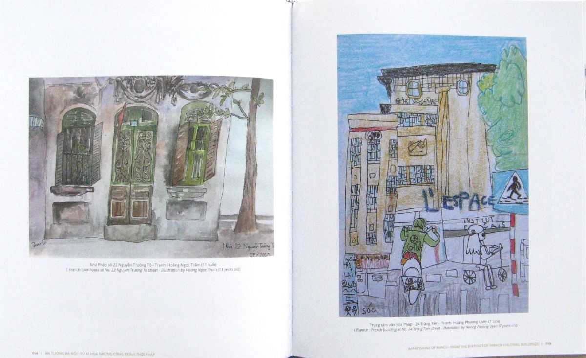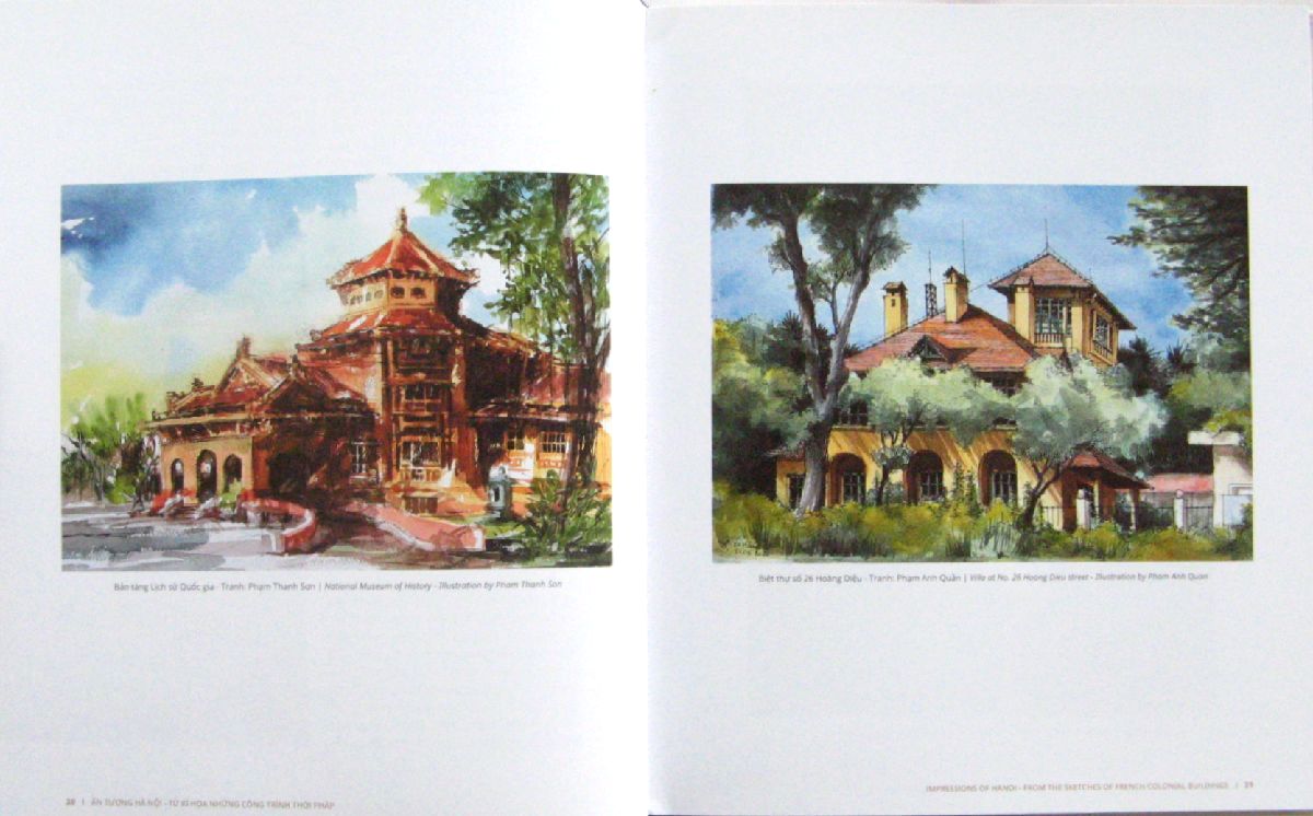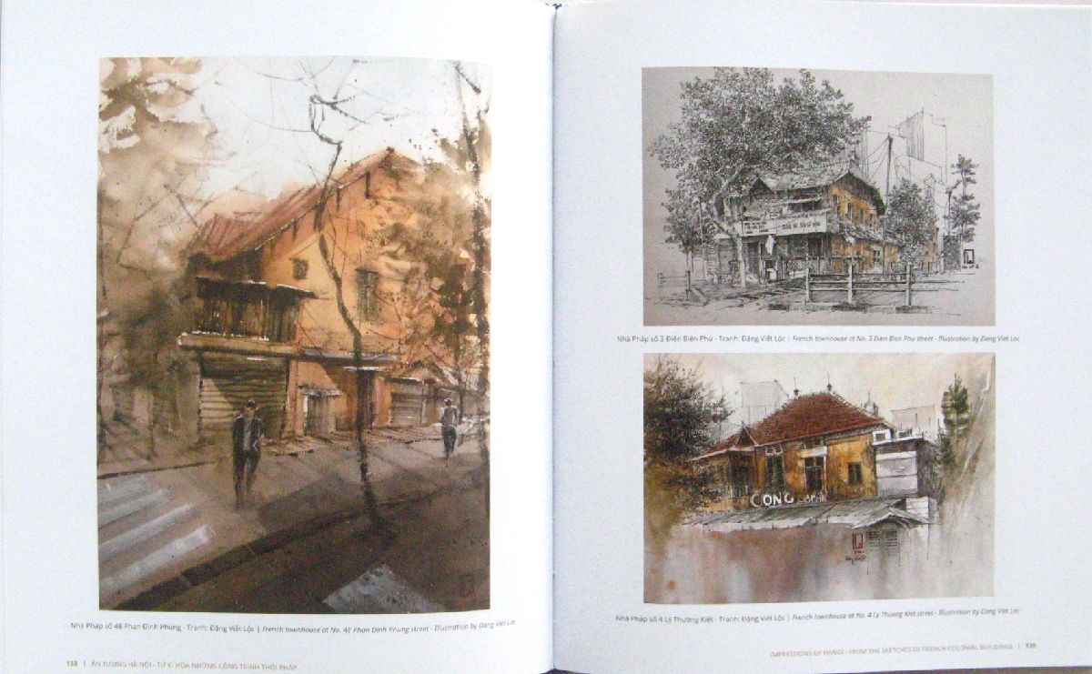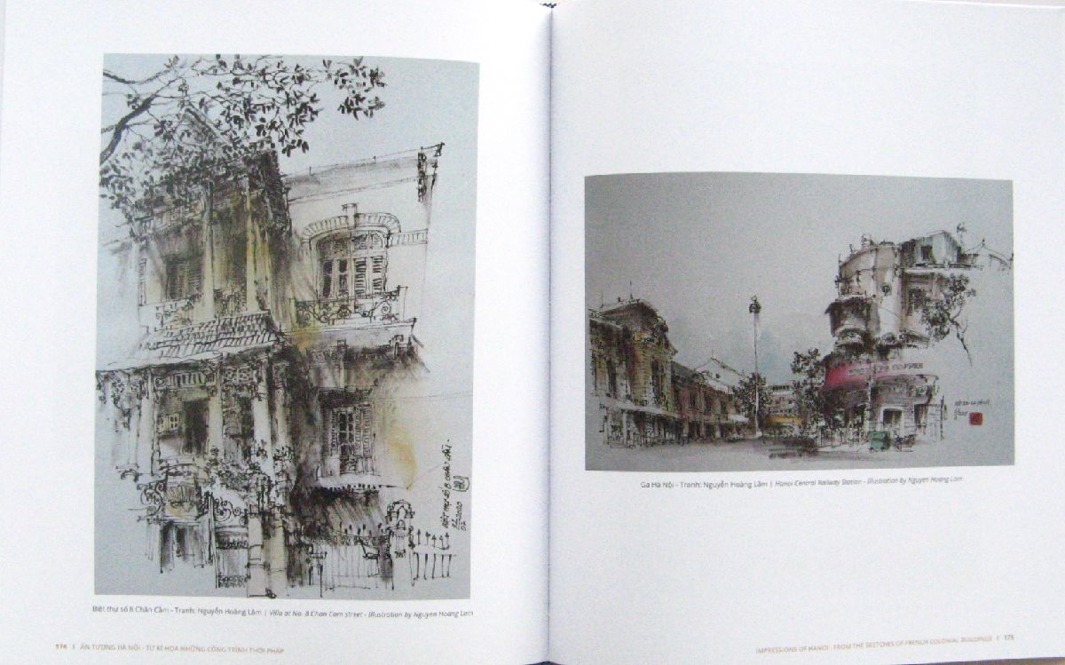 多くの著者とあるように、青少年男女による仏植民地時代の建物に関するスケッチを集めた一冊である。 ハノイのフレンチクオーター、ハノイの別荘:ハノイの物語、20世紀初頭のハノイ:極東のフランス風の町かそれともフランス風の極東の町?、ハノイのフレンチクオーターの建築形態=昔と今、フレンチクオーター街路の天井に飾られた装飾物詳細の話、ハノイ大劇場の後、私の中の「ハノイの半分」、ハノイでフランス人建築家により設計及び建設された建築物、ハノイ市イラストグループの若いメンバーが見た古いフランスの家、千年の歴史を経たハノイ=未来の都市の姿、フレンチクオーター、ハノイ市イラストグループの紹介、グループ活動写真、本書の筆者(イラストレーター)達。 各スケッチには対象の建物、その場所などごく簡単な説明、それに作者名が記されている。本書はキムドン出版社からの出版だが、小さな子供むけということではなく、内表紙にはDành cho tuổi trưởng thành(成長期の年齢向け)とあり、それなりの年齢の読者が対象ということと思われるが、フランス時代の建築物のスケッチがテーマであり成長した大人でも十分に楽しめ、参考になる内容である。イラストレーター60人余りは顔写真付きで名前が紹介されている。ほとんどはヴェトナム人だが、若干の外国人名も見える。
