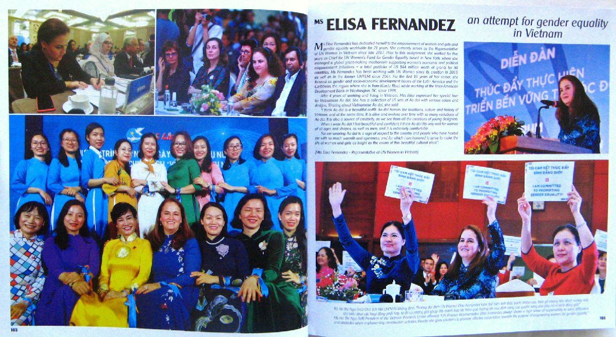 各界で活躍している女性約120人を紹介。 表紙をめくってまもなく日本人の名前があるが、本書で取り上げる人ベトナム人のみでなく外国人も含まれている。従ってタイトル「私たちは」の後が「ヴェトナム人」なのではなく、「ヴェトナム」なのであろう。色々な研究分野の(助)教授等の専門家、博士、芸術家、詩人、芸能人(女優、役者、歌手、演出家等)、スポーツ選手・コーチ、政治家、政治家、ジャーナリスト、起業家、企業家、国防・安全従事者、教師...。活躍している人、著名人なのでこれまでにマスコミなどで紹介されたことのある人が多い。一人当たり4頁(最初の見開き両面2頁は越語、次の2頁は英語)でいずれのページも写真の占める割合が多い。 260x260o, 2.04kg, 507pp, SC, ヴェトナム語及び英語