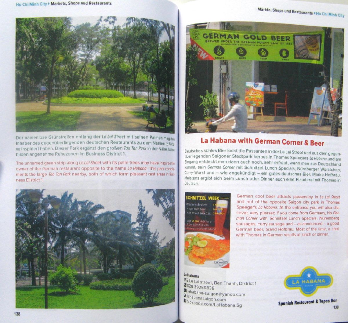 即ちベトナムの中の様々なドイツを紹介したもので、ドイツ語というところからオーストリア、スイス関連もある。公的機関以外に、ベトナム・ドイツ大学、国際ドイツ学校等の学校、ドイツ料理、ドイツ・ストリート・フード、ビール醸造所、ドイツ人ラウンジ、ドイツ・ブランド・ショップ、ドイツ・ビール・ラウンジ、ドイツ語医療機関、…。カラー写真多数掲載。
