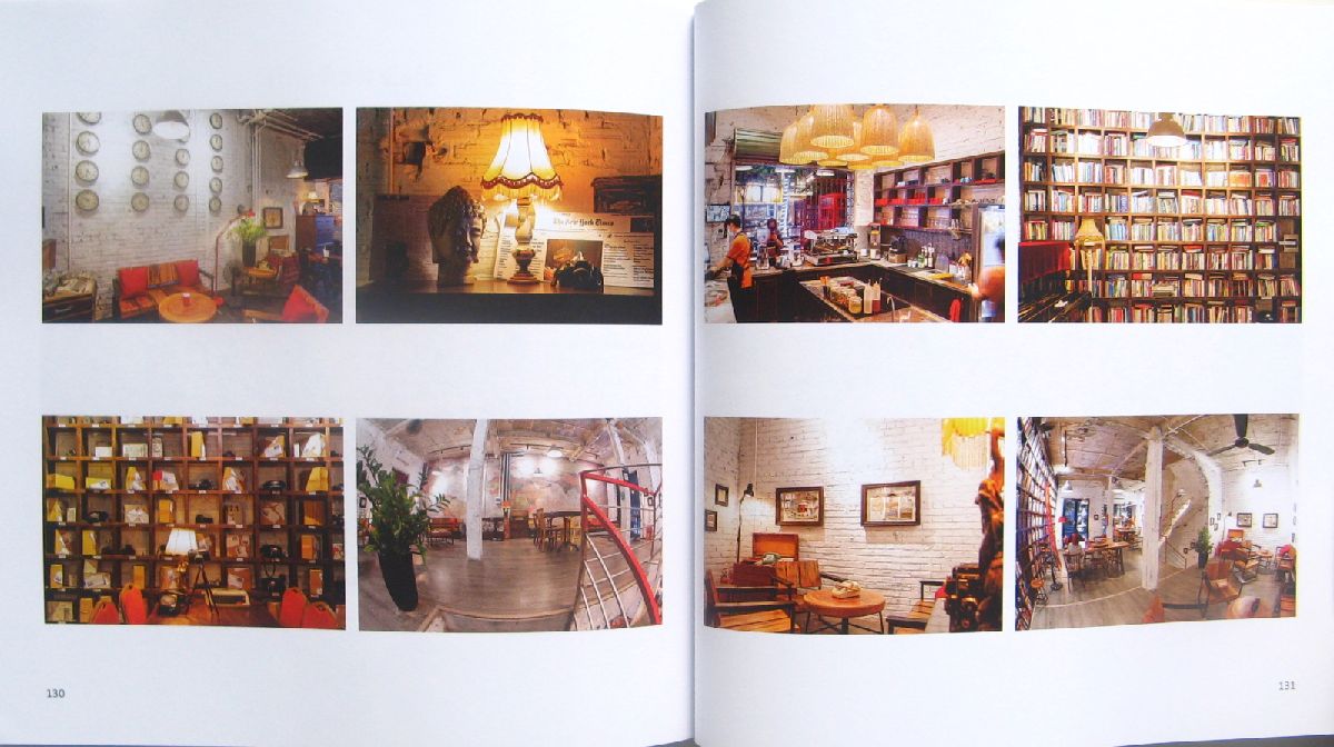 最初に筆者、前書き、お茶の視点、コーヒーの視点と題してそれぞれ1頁ずつ記したあと、本題部分は、伝統的でノスタルジック、トレンディでクール、アウトドアと近所、と分けて多数のカラー写真で紹介。路上の店を除き多くは店名と住所、それに店のコンセプトなど外洋を文章で紹介している。