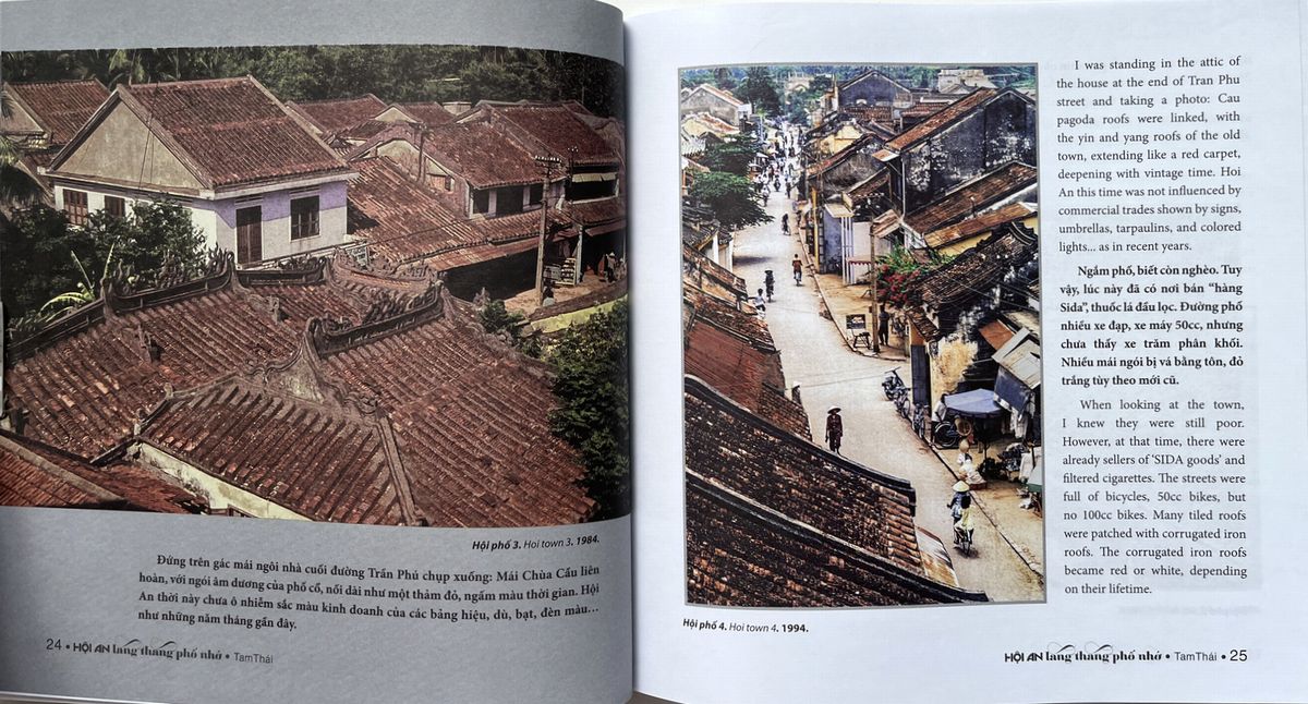 本書は筆者の『1980年から2024年まで、の数々の小旅行の成果です。おかげでホアイホーの移り変わりを肌で感じることができる。歳を重ねてもなお、写真には大切な思い出が刻まれている。コロナウイルス感染症のパンデミックで、何ヶ月もの間、ドアが閉ざされ、怠惰は悪魔の工房。そこで私は「古い鏡を壊して影を見つけ、古い服を片付けて息を守る」という思いを抱き、写真アーカイブをまとめた。一枚一枚の写真は、私が生きた時代の証人であり、自営業ジャーナリストとしてのささやかな現場経験でもある、という思いを込めて』。
