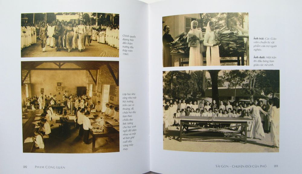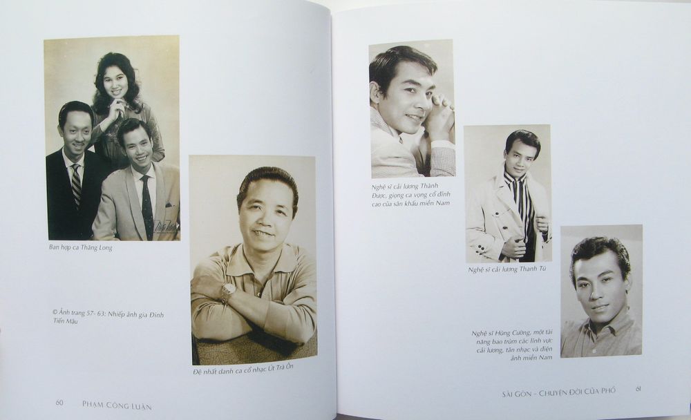 時代とともに変化していくサイゴンについて、かって流行したものも含め幅広い文化を取り上げ写真とともに綴った。従って数人の研究者や写真家、画家などの協力も得て完成させた一冊である。水上の花売り、古い家、レトロや古物、その中には60年代の旧政権下に発行された雑誌の表紙写真。出版物や当時活躍の歌手・俳優の写真、ミニスカート姿の女性..
