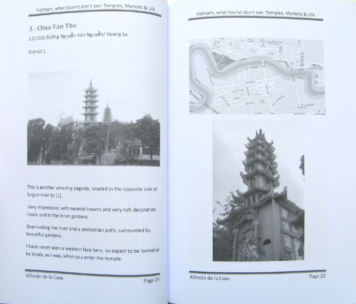 番号を付けて24か所を紹介。それらはハイドゥック寺、タィンザ教会、ヴァント寺、クァンアムトゥヴィエン、タンディン市場、タンディン教会、フーハィン教会、ロンタィン寺、バチェウ市場、...など。1点は不明の寺として見えるものの、周辺の建設ラッシュが激しく近づくことも出来なかったものも紹介。