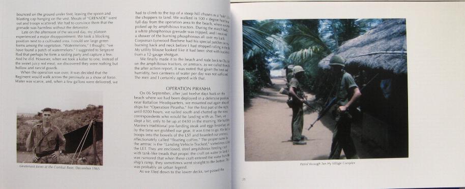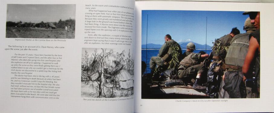 始まり(戦争への準備、スイサイド・チャーリーとキャンプ・ペンドルトン、沖縄)、同地にて(スターライト作戦、ピラニア作戦、チュンファン半島のベースキャンプ、トゥエット・ジェム、現実と徴候、ビンソン)、ベトナム組曲、インディアナ作戦又は”戦闘”(プロローグ、公式記録から、中隊指揮官のこと、隊員のこと)、引用、女性の歌、葬送ラッパ、小型武器の用語と我々の携行品、に分類。写真、スケッチと初めて明かされる隊員の体験談、見て読んで、に加えて限定プレスの”Vietnam Suite & Chopper Blues”というタイトルのCDが附属しており、それには、画像と詩の朗読や彼らのオリジナルやトラディショナルな歌が収録されている。