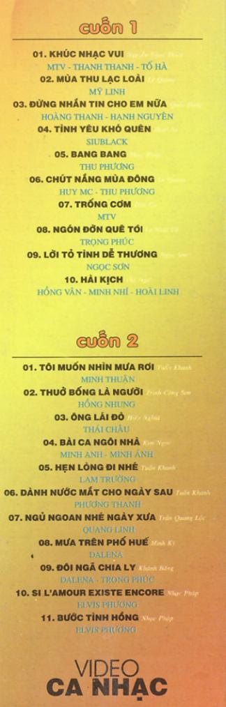 合間の歌も少なくはなく、ニュー・ハオ、バオ・イェン、タム・カ・アオ・チャン、フォン・タィン、トゥ・ミン、ミー・リンなど。