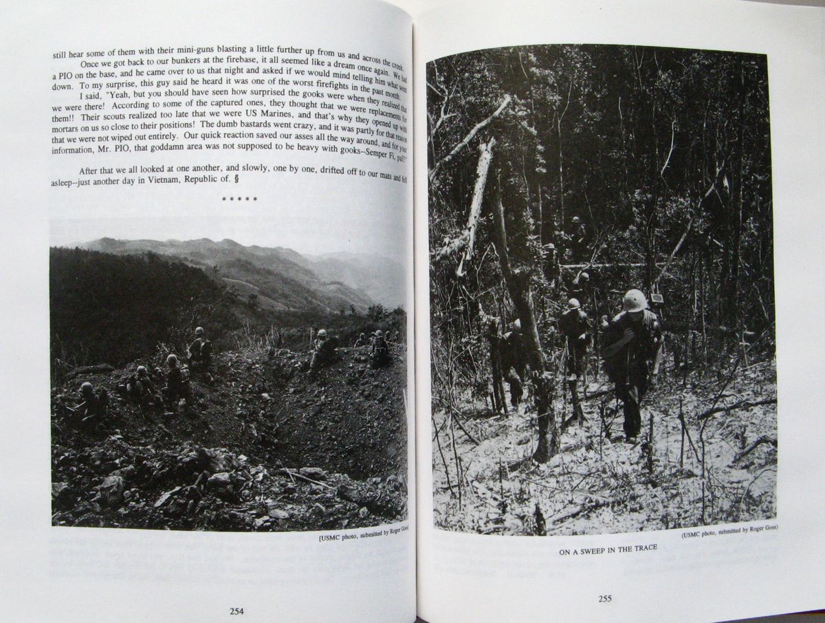 その見出しとしては、第1海兵隊第2大隊のフォーメーションとベトナム到着、ハーヴェスト・ムーン作戦、あるマリーンの回想:1965年12月、これがグラントの人生、決して忘れられない夜、インディペンデンス作戦、火力支援、ドン・デニスの日記:ライフルマン人生の13ヶ月、ケサンでの火力戦、….。それぞれ筆者(投稿者)は異なる。